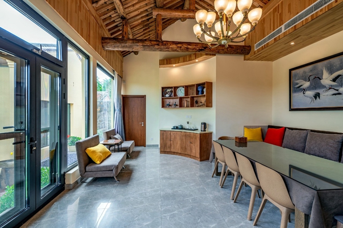 室内房梁高挑、空间舒适,多带有沙发床,大大增加了入住人数;院里蹦床、戏水池、小池塘...各尽心思;最大特色当属小院所借的山势风光,或倚山峦、或面松海、或独享私家菜园,不小心就囊括了最美风景。