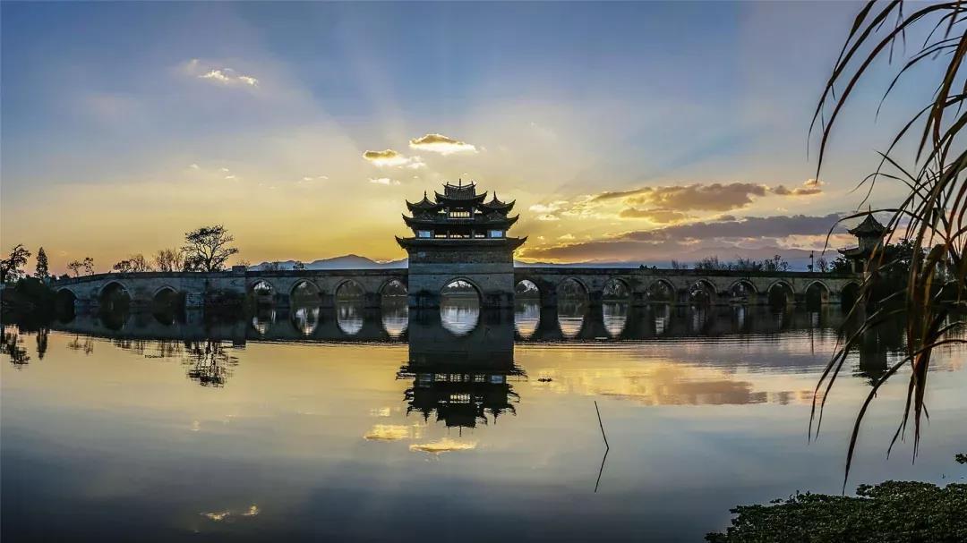 晚霞中的双龙桥