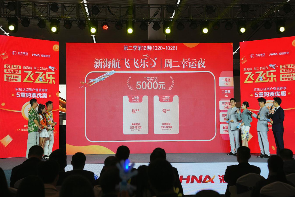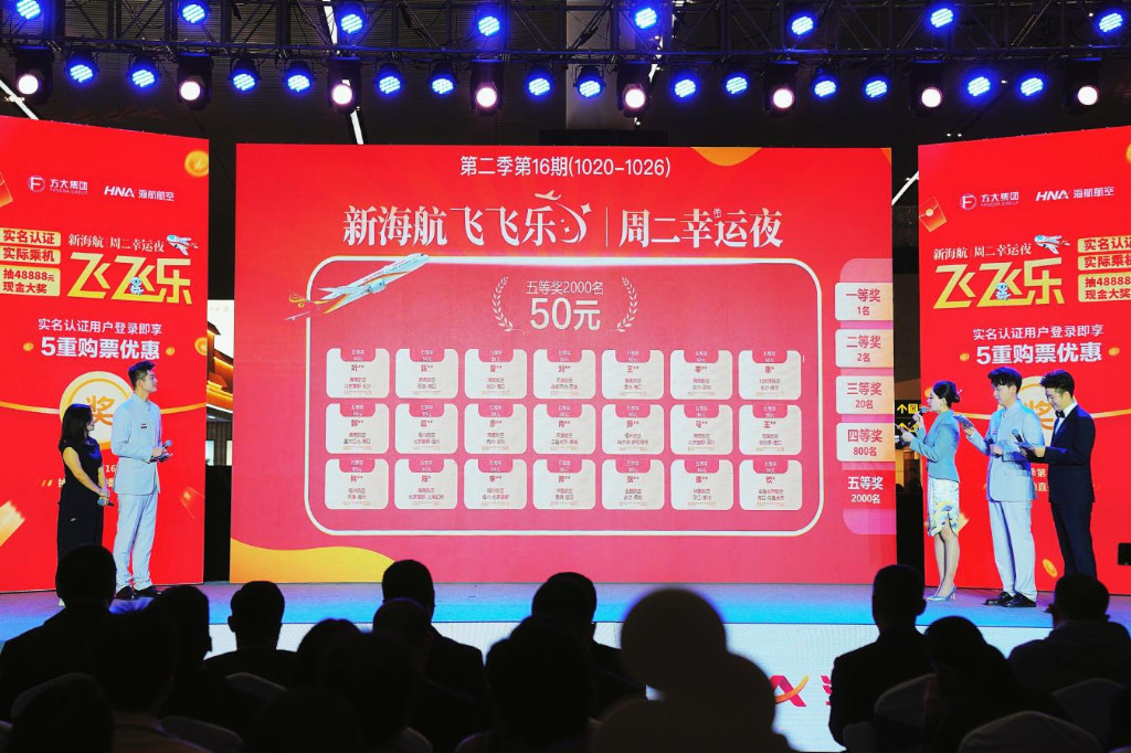 “飞飞乐”周二幸运夜现金抽奖活动是新海航与消费者共享发展成果、助力航空旅游经济发展的旅客回馈活动,每周二晚8点通过“海南航空”APP直播抽奖,奖项方面设置了48888元、5000元、1000元、200元和50元五个等级的奖项回馈旅客。目前的第二季抽奖活动从规则设置上进一步提升“海南航空”APP实名认证用户体验,为实名认证用户和旅客带来更多惊喜与实惠。同时,如果符合指定条件,还有机会让抽奖机会翻倍,单人最高可获8倍抽奖机会。